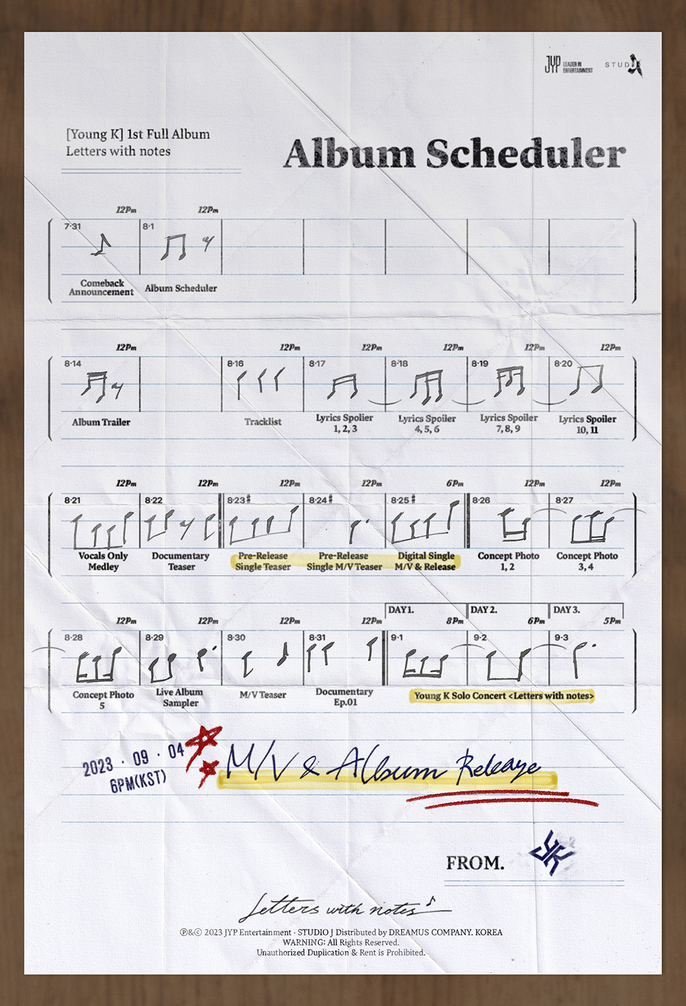 Young K 1st Full Album <Letters with notes> Album Scheduler