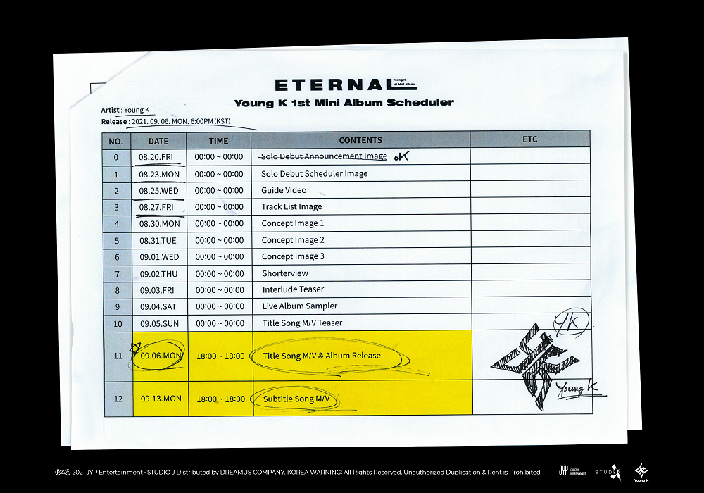 Young K 1st Mini Album <Eternal> Solo Debut Scheduler